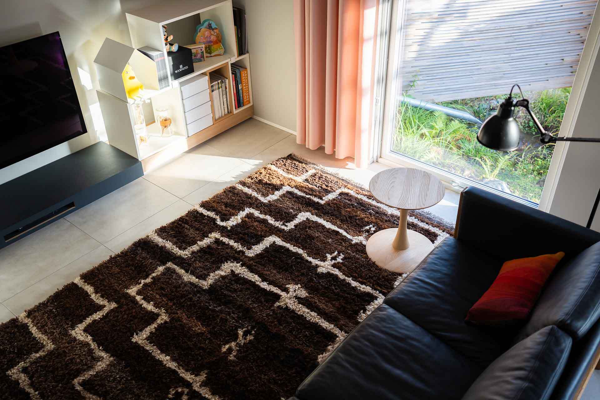 アラネックセレクトのラグは、良品な羊毛を手紡ぎすることで本来の脂分がしっかりと残っておりますので、髪の毛や食べこぼしなどの汚れは毛足に絡まりにくいのが特徴です。日常的なお手入れは、ラグ全体にまんべんなく掃除機がけを行ってください。万が一ジュースなどの液体をこぼしてしまった場合でも脂分によって水分が弾かれますので、直後であればほとんどの場合濡れたタオルで拭き取ったり、水洗いで落とすことが可能です。