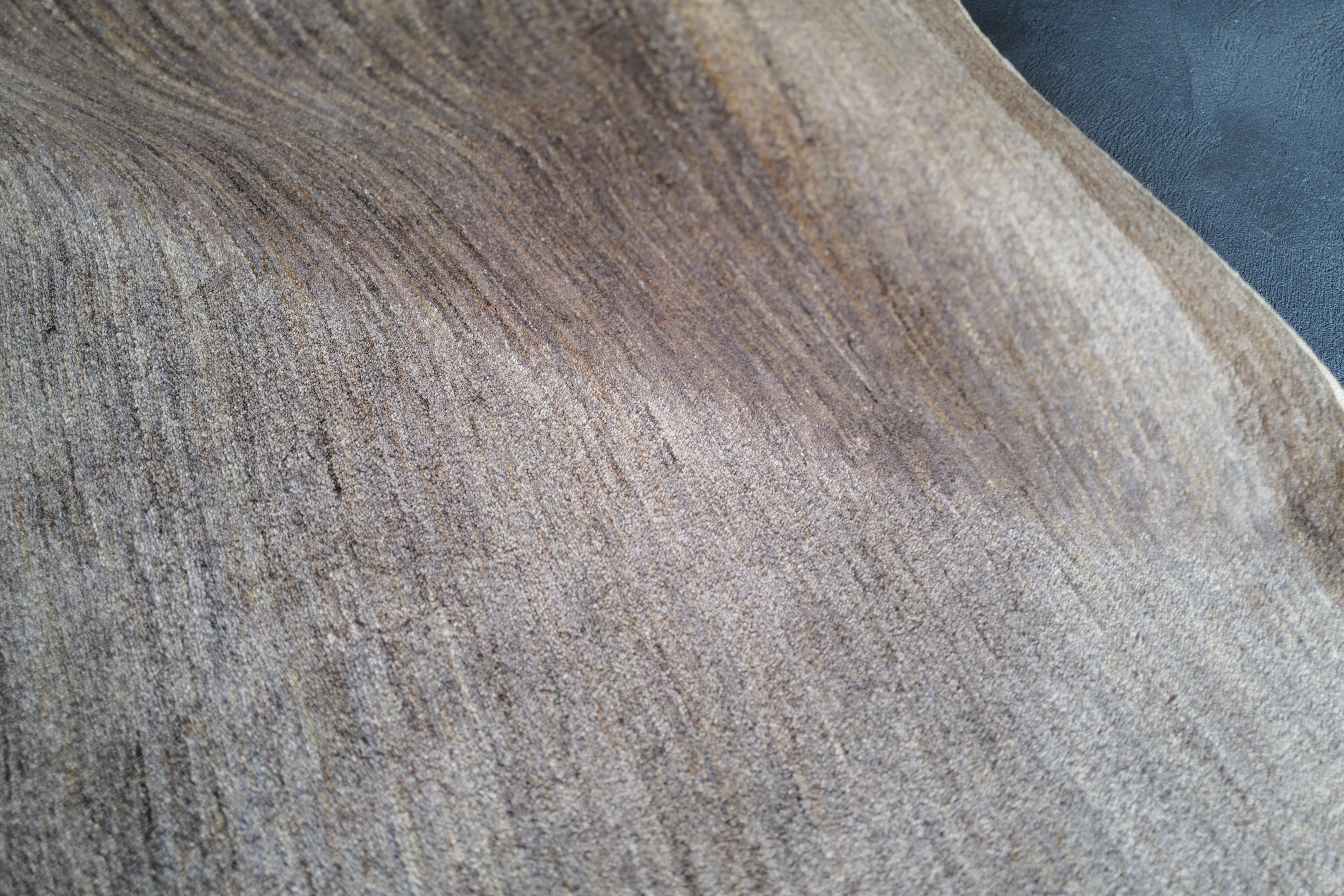 ウール本来の良質な脂分もしっかりと残っており毛足も長めですので、ラグの中でも一際目を惹くシルクのような光沢が見られ、光の当たり方によって濃淡が変化します。