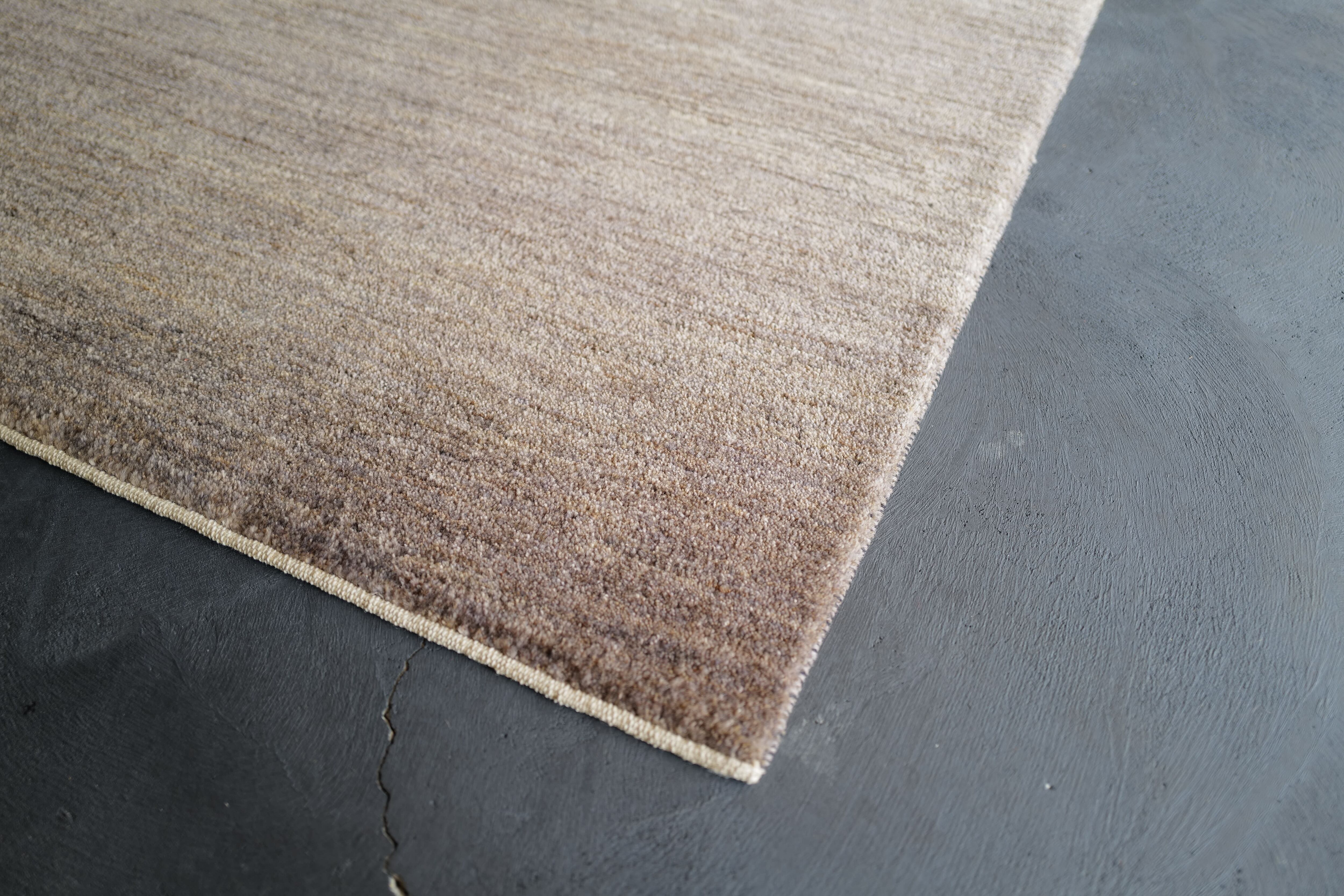 淡く優しい色合いのグレー。ギャッベならではの素朴さやあたたかみは残しつつ、無地ならではの洗練された印象の一枚。素材の良さを活かす丁寧な手仕事の賜物、潔さすら感じます。
